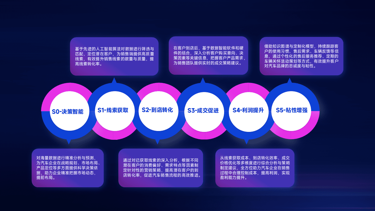 基于销售转化漏斗的薄弱环节,,,,为客户提供数据+模型+运营的智能应用,,,,实现销售业绩的提升;推动线索管理全链路的精细化管理和运营。。